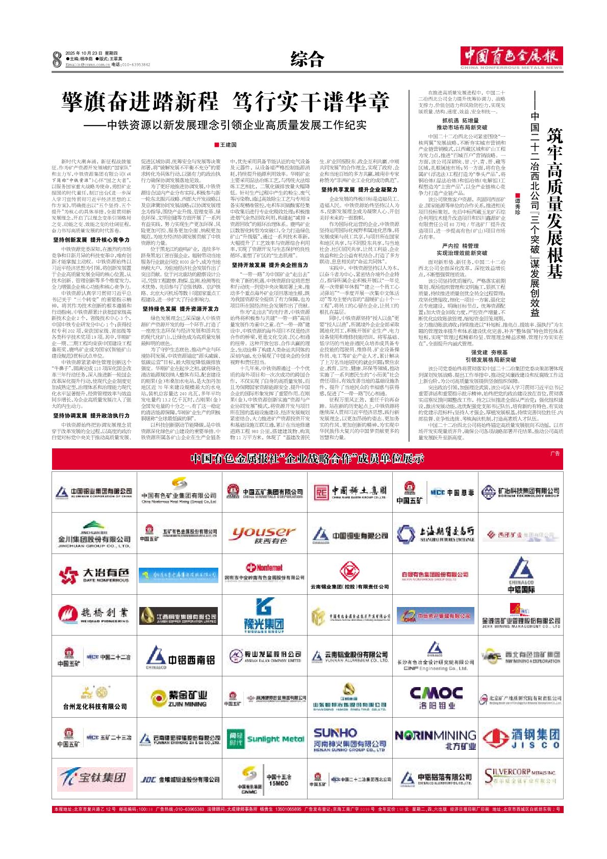 中國有色金屬報:筑牢高質量發展根基——中國二十二冶西北公司“三個突破”謀發展創效益