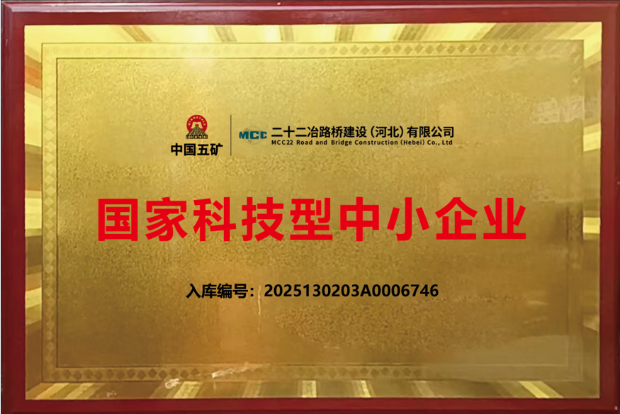 近日,二十二冶路橋建設(河北)有限公司通過國家科技型中小企業認定。這一由科技部和工信部聯合授予的資質備案,不僅是對公司創新實力的“官方認證”,也標志著公司在技術研發和創新發展方面邁上了新臺階。